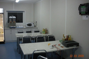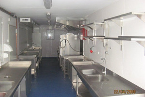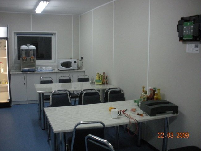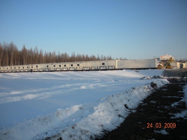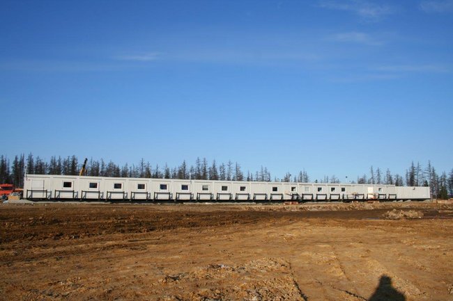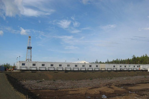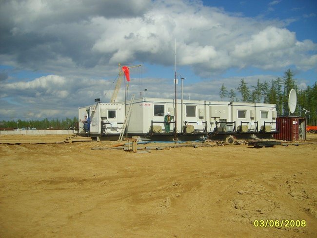 The Nabors Drilling International Project is located In Northern Russia (Usinsk region). A 190 person rig camp met the growing trend in temporary workforce housing by leading away from institutional type dormitories and heading towards a more exclusive type of aesthetically pleasing facility, but also offers amenities equal to higher rated camps. What is considered as a unique asset is that it is a self-sufficient camp consisting of bedrooms, VIP bedrooms with a private washroom, a kitchen, a dining room, a laundry room, recreation area, a mud-room and a conference room. This is accomplished by utilizing every possible modern convenience that mimics a persons home life as well as installing finishing materials to provide a sense of comfort and ease. The Nabors accommodation facility project is structurally, mechanically and electrically prepared for easy and rapid connection. The entire facility is structurally supported on steel skids, which serve convenient transport in the Siberia tundra and also quick assembly.The 2 ea Wellsite camps which is attached to the main 190 men camp is electrically prepared for dual power supplied from different sources : American standard voltage or European standard voltage. The power is derived from diesel generators with the appropriate electrical switch gear and “quick connect” plugs for ease of mobilization.These living facilities also include environmentally friendly water and sewage treatment plants, which are an advantage, especially in Siberia. The entire camp is equipped with internet network, telephone and satellite TV system. The most important criteria for the operation of the facility is 95 % factory completion that includes all system testing and sign off. The rig camp is designed and built to be “plug and play”. All mechanical, plumbing and electrical fixtures are chosen for their low volume and low energy use abilities. Essentially, the low volume and low energy fixtures limit and control the client need to reload on natural resources. The erection process at site is reduced to minimum due to quick connection.